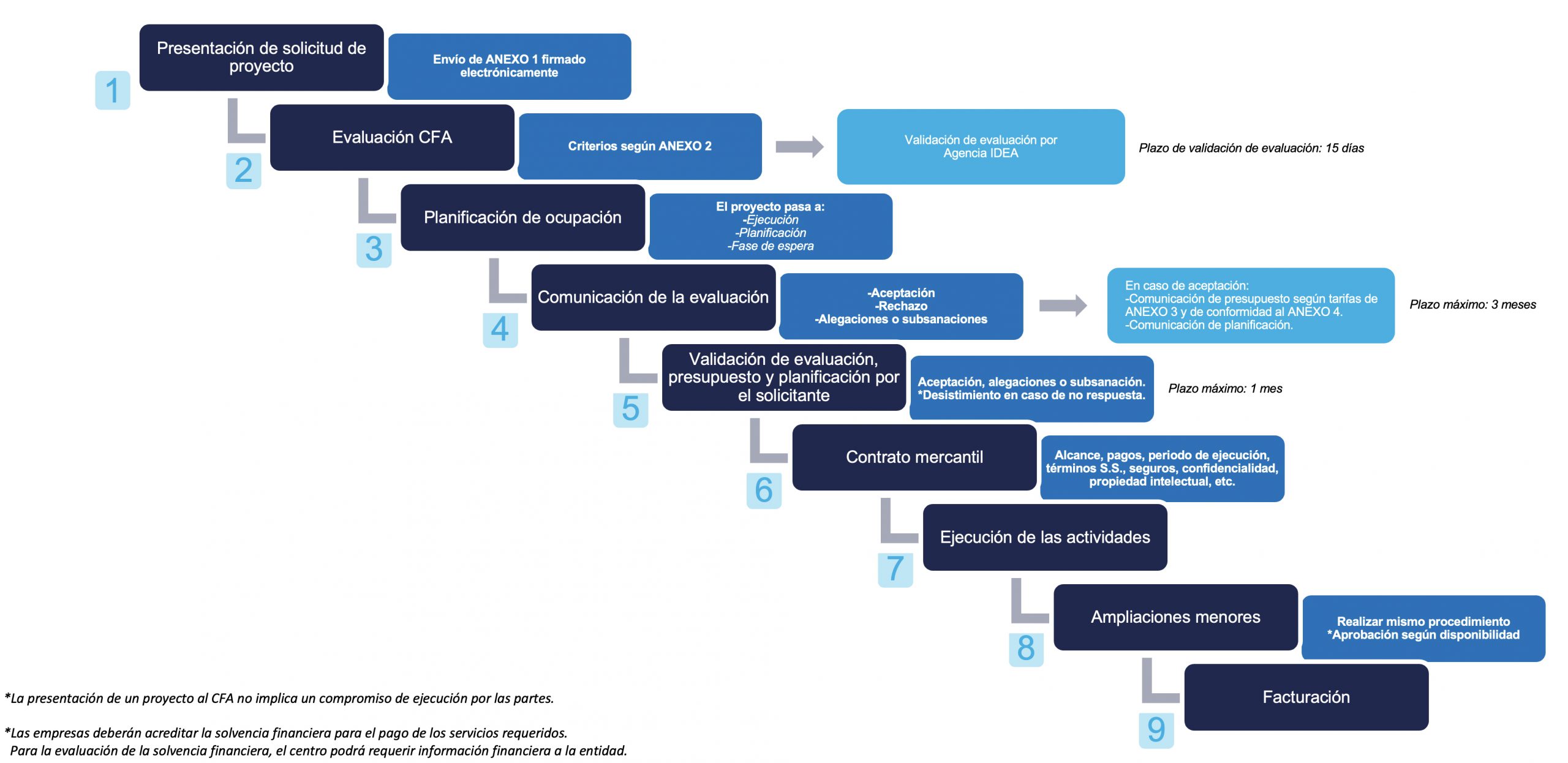 * Las empresas deberán acreditar la solvencia financiera para el pago de los servicios requeridos. Para la evaluación de la solvencia financiera, el centro podrá requerir información financiera a la entidad.