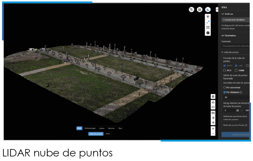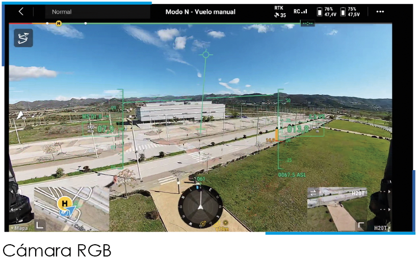 Dron aéreo, con capacidad para realizar fotogrametría de precisión con sensor RGB, cámara termográfica radiométrica y telémetro láser, y sensor LiDAR.
